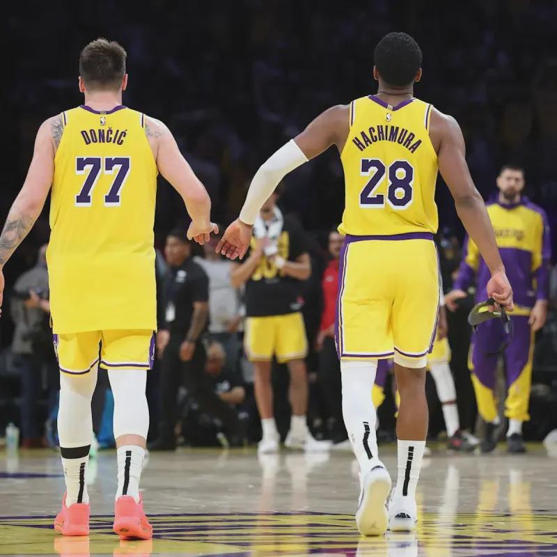 东契奇和八村塁搭档出场613分钟,出场时间在湖人队内二人组中排名第3(第1东契奇和艾顿680分钟、第2东契奇和拉拉维亚649分钟),该二人组每百回合赢对手1.4分、1.4篮板、1.1盖帽,输对手3.3助攻、1.2抢断、多1.4失误,东契奇总计助攻八村塁38次,八村接东契奇传球内线攻框命中率48.8%属于不合格水平,三分线外接东契奇传球43投20中命中率46.5%属于超级出色水平.